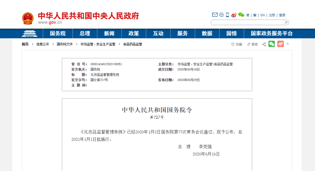 化妆品监督管理条例